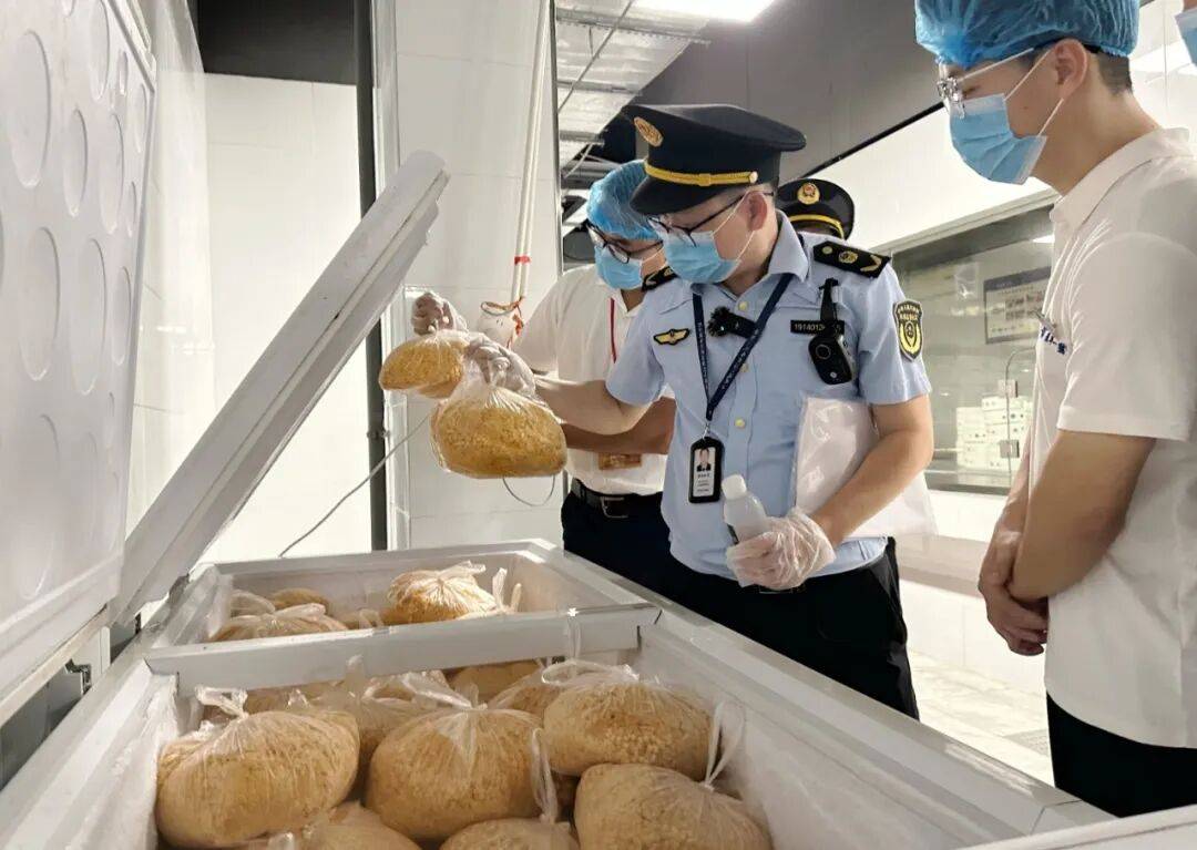 平海谣餐饮店存正在食物平安公示内容不规范、仓库储存温度不达标、部门食物无离地储存等问题;并赴现场全程监视查抄过程。阳东区市场监视办理局相关担任人暗示,要留意留存相关,全力守护市平易近旅客“舌尖上的平安”,法律人员现场责令店肆担任人整改。依法本身权益